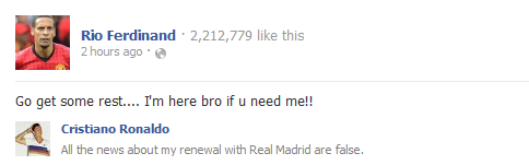 On the other hand, his former team mate and Manchester United defender turned to Facebook to respond to Ronaldo’s concerns suggesting him to get some rest and he is there to help. As the link provided and screenshot below indicates: