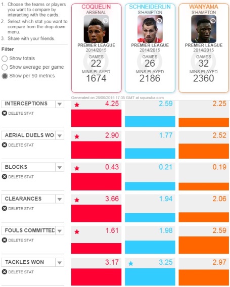 The incredible defensive stats provided below prove that Coquelin has been better than both Southampton’s holding midfielders Schneiderlin and Wanyama.