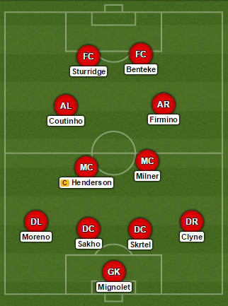 Having signed the likes of Milner and Firmino, the lone striker formation suits Liverpool where BR can fit majority of his playmakers. However, here is how we believe Liverpool will line up if both Sturridge and Benteke start.