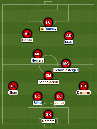 As far as the defense is concerned, expect Jones and Blind to start in central defense with Darmian and Shaw covering the fullback positions. Sergio Romero should start in goal for the Red Devils.