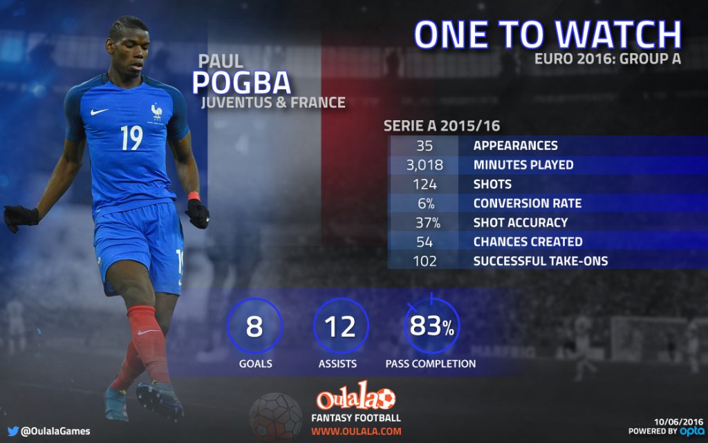 As per stats gathered by Fantasy Football site Oulala, Juventus midfielder Paul Pogba will be the player to watch for the French national team.