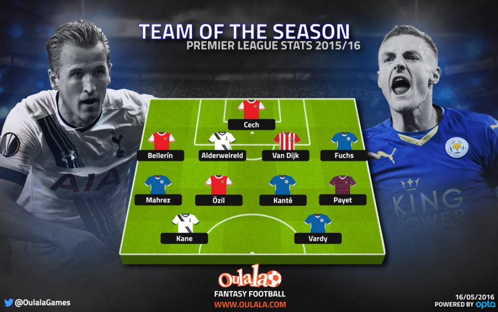 Opta-powered Fantasy Football site Oulala have come up with a stats based Premier League team of the year that is mainly dominated by Leicester and Arsenal stars.