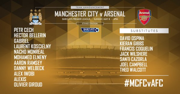 Jack Wilshere and Santi Cazorla find themselves on the bench. Here is Arsenal’s confirmed XI vs Manchester City.