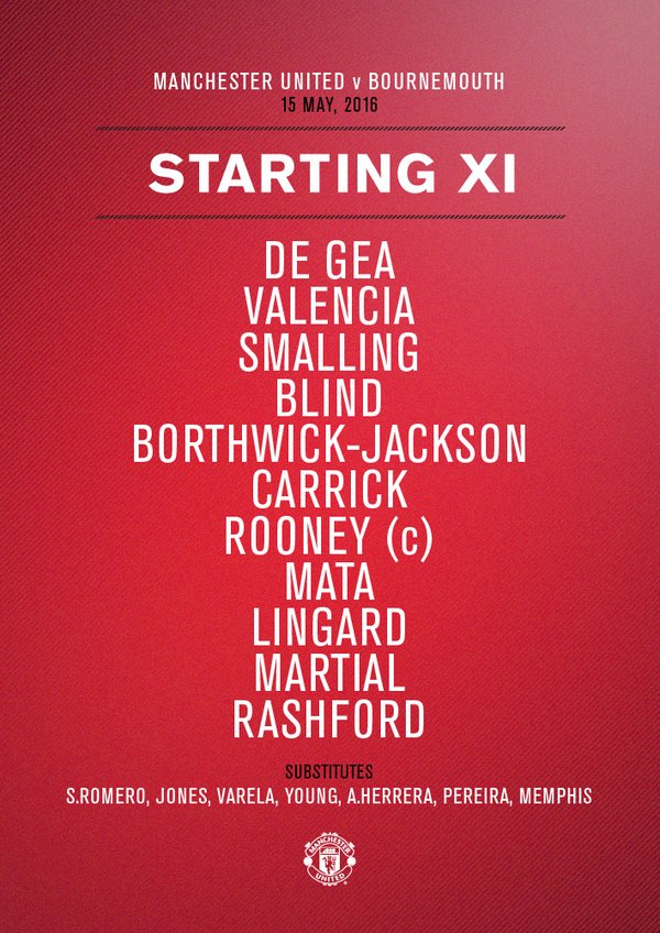 Dutch manager Louis van Gaal has selected a very attacking starting XI against Bournemouth in what could be his last league game for the Red Devils.