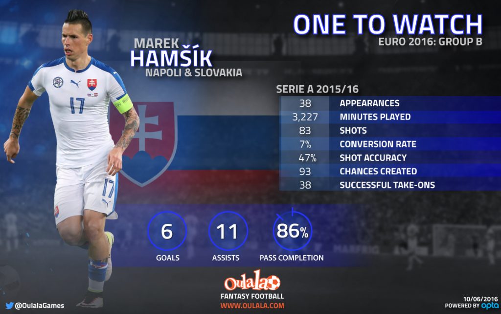 Fantasy Football site Oulala also believe that the 28-year-old attacker will be Slovakia’s main man in the competition.