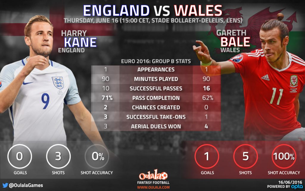 Stats – Harry Kane vs Gareth Bale – England vs Wales