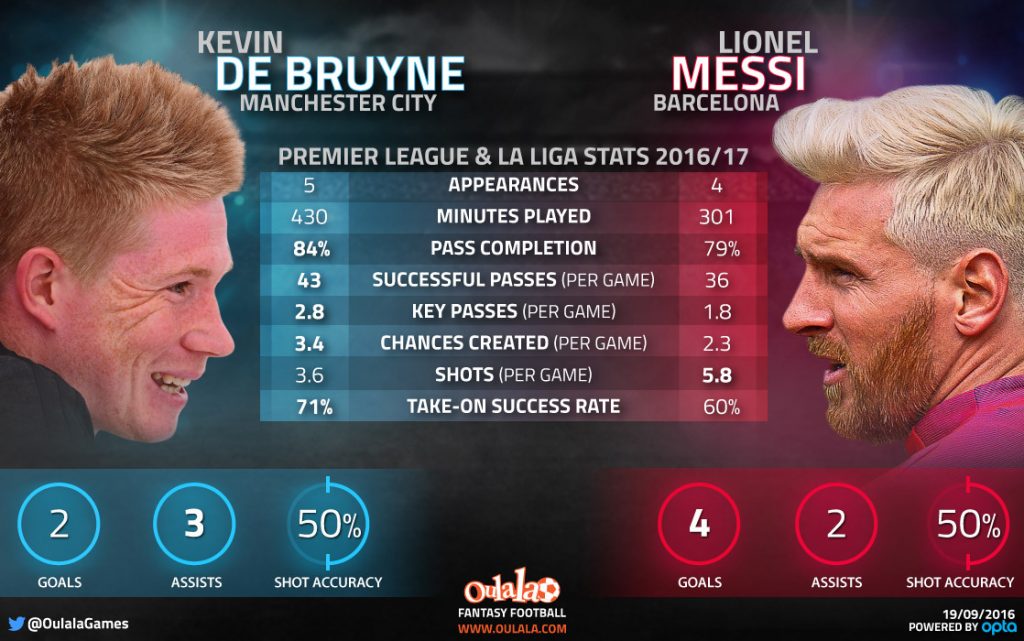 Fantasy Football site Oulala have checked the stats of the two attackers and their figures show that the former Chelsea attacker is in fact ahead of the Barca superstar in a number of key areas this season.