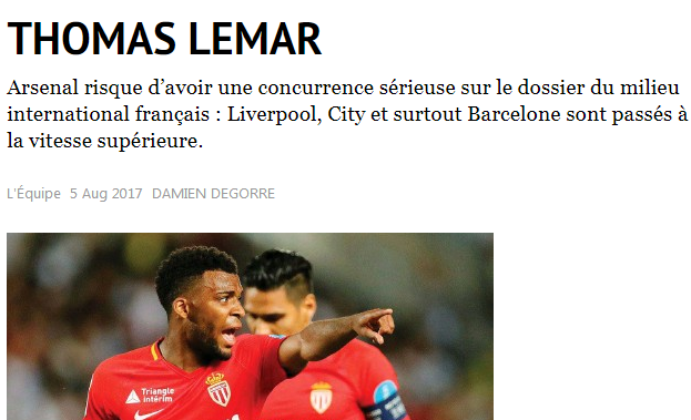 Now, according to renowned French source L’Equipe (press image provided below), Arsenal are going to have serious competition to sign the 21-year-old attacker because the likes of Liverpool, Barca and Man City have moved on to top speed to sign the attacker.